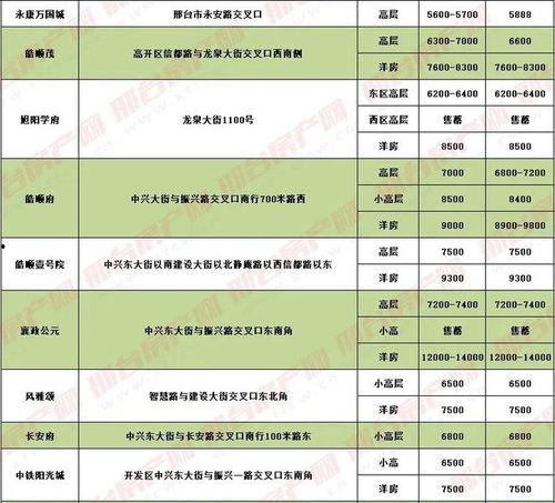 据最新数据显示,邢台市楼盘价格整体呈上升趋势。其中,住宅类楼盘价格涨幅XX%,商业类楼盘价格涨幅XX%。这一趋势主要得益于邢台市经济的快速发展,以及人们对美好生活的追求。